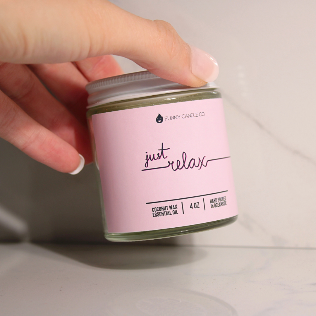 With its simple yet effective name and enticing fragrance, this candle is the perfect way to take a break from the hustle and bustle of daily life in a humorous way. Whether you're lighting it up after a long day at work or just need a moment of peace and quiet, the "Just Relax" candle is sure to help you recharge your batteries and feel refreshed.