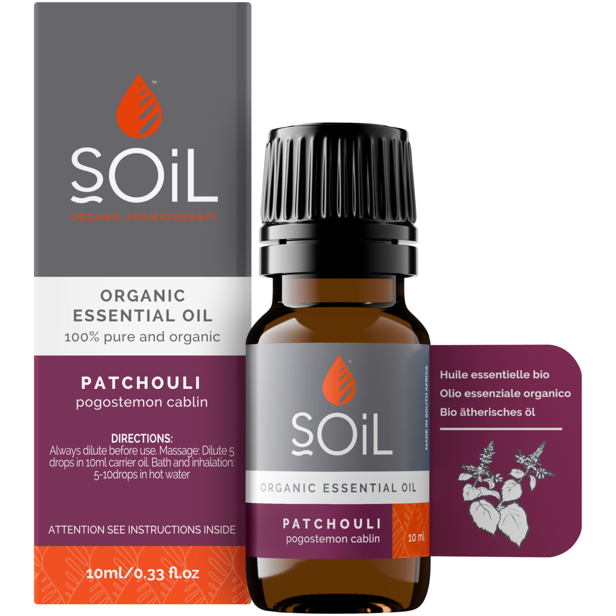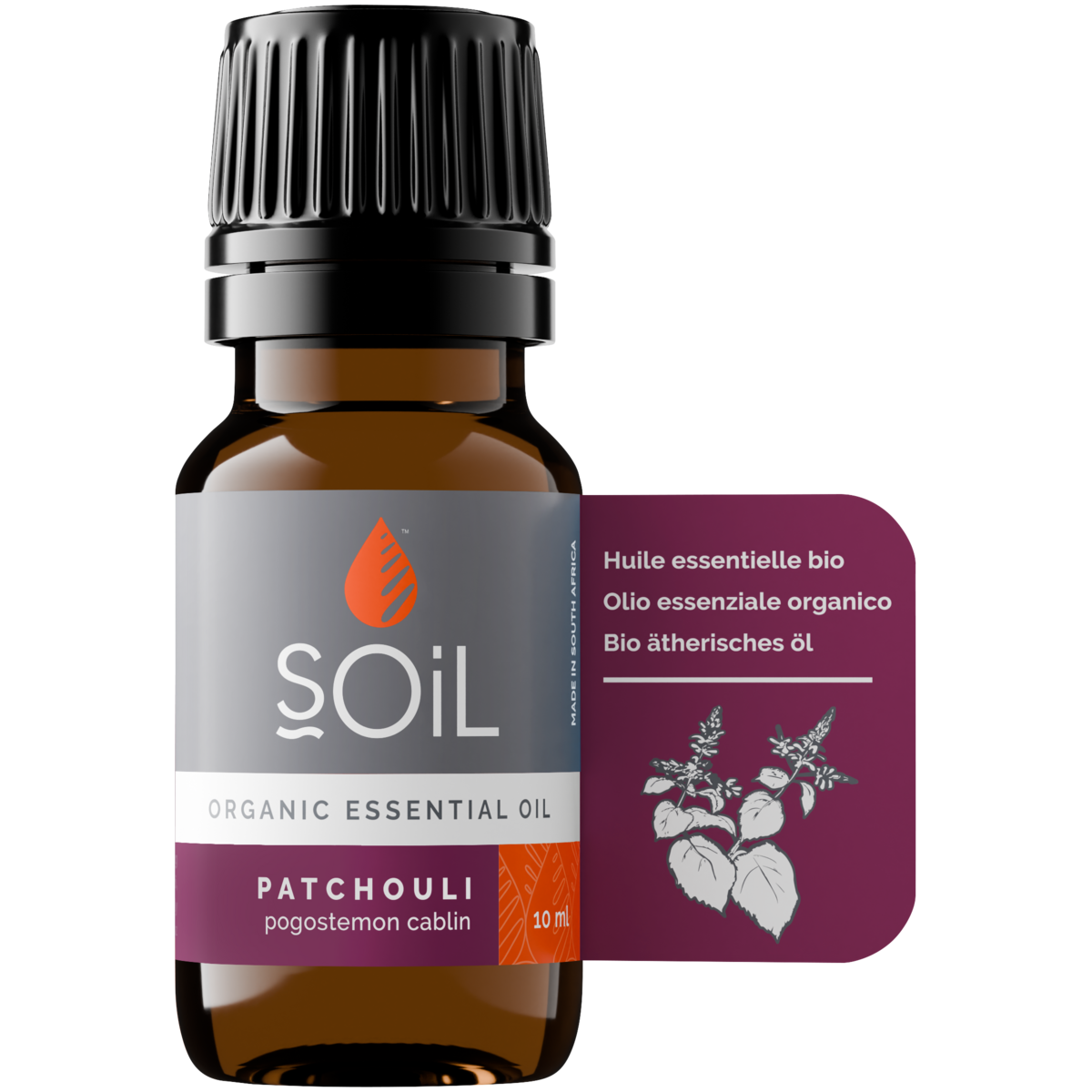 Although there are several species of Patchouli, the best oil is considered to be distilled from the Cablin variety. The plant is a shrub with large leaves and small pink flowers. The oil itself is orange-brown in color. Patchouli has a distinct earthy aroma.